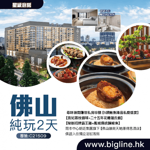 【星級廚房】尋味嶺南隱世私房珍膳【5頭鮑魚臻品私廚盛宴】【貴妃荔枝蝦球+二十五年花雕羅氏蝦】【秘制招牌霸王雞+鳳城傳統釀鯪魚】鬧市中心【佛山嶺南天地康得思酒店】保證入住獨立浴缸客房 純玩2天