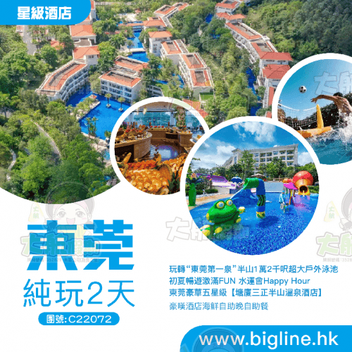 【星級酒店】玩轉“東莞第一泉”半山1萬2千呎超大戶外泳池 夏日嬉水Happy Hour 東莞豪華五星級【塘廈三正半山溫泉酒店】豪嘆酒店海鮮自助晚自助餐 純玩2天