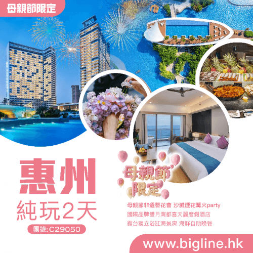 【母親節限定】母親節非遺簪花會 沙灘煙花篝火party 國際品牌【惠東雙月灣都喜天麗度假酒店】 露台獨立浴缸海景房 尊享酒店海鮮自助晚餐 純玩2天