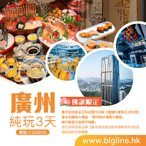 【佛誕限定】重本安排超豪日料放題天花板《星龍吟奢華日式料理》重本玩轉兩大樂園 「廣州森林海嬉水樂園+廣州華夏世嘉都市樂園」連住兩晚國際品牌【廣州增城碧桂園希爾頓逸林酒店】酒店海鮮自助晚餐 純玩3天