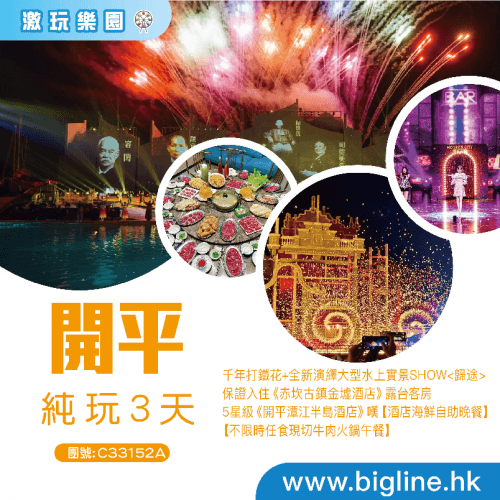 【激玩樂園】2025年全新打造~大型水上實景演繹SHOW+千年打鐵花 保證入住《赤坎古鎮金墟酒店》+5星級《開平潭江半島酒店》嘆【酒店海鮮自助晚餐】純玩3天