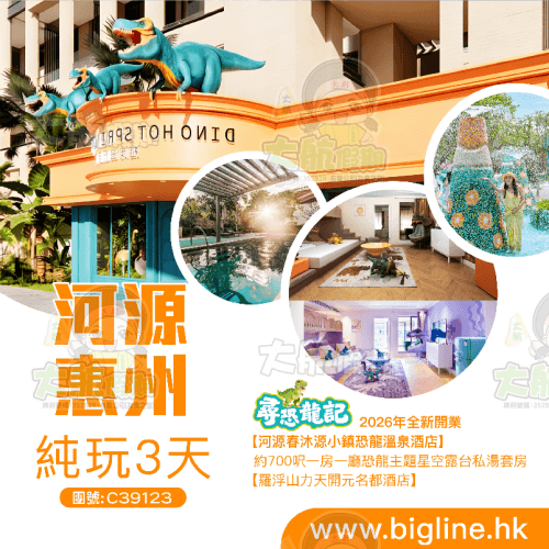 【探索新酒店】 “尋恐龍記” 2026年全新開業【河源春沐源小鎮恐龍溫泉酒店】+【羅浮山力天開元名都酒店】保證入住約700呎一房一廳恐龍主題星空露台私湯套房 純玩3天