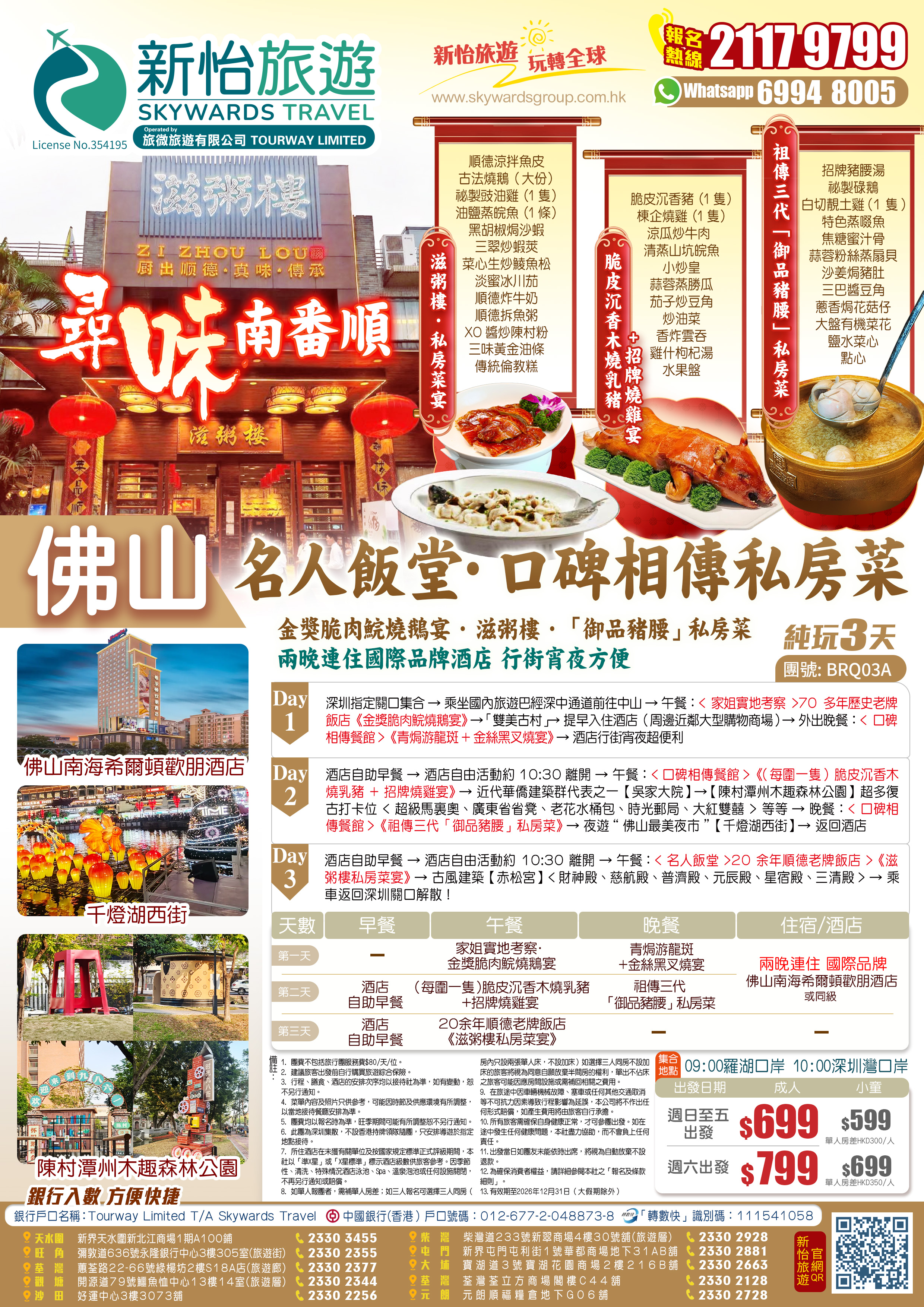 尋味南番順【名人飯堂】+<口碑相傳私房菜>《祖傳三代「御品豬腰」私房菜》+《滋粥樓》+《家姐實地考察·金獎脆肉鯇燒鵝宴》 兩晚連住國際品牌酒店 純玩3天