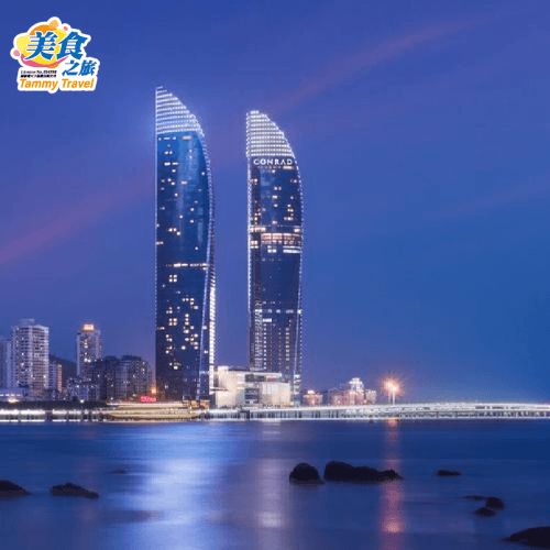 【西九龍往返】廈門頂奢地標帆船雙子塔國際品牌超豪五星康萊德酒店、龍岩天子溫泉、廈門集美海景皇冠假日酒店、世界文化遺產&土樓王-承啟樓、鼓浪嶼、帆船出海、品馳名美食《鮑魚海鮮+佛跳牆位》高鐵4天