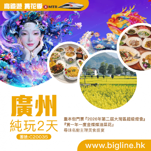 【高鐵游 賞花系列】重本包門票『2026年第二屆大灣區超級燈會』『賞一年一度金燦燦油菜花』尋味美食盛宴 純玩2天