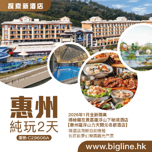 - 由心安排:特別安排大航團友每日首團前6位升級約700呎獨立湯泉泡池大床客房