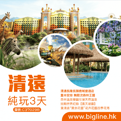 【靚景輕鬆遊】清遠長隆長頸鹿城堡酒店 重本安排 無限次森林王國 森林溫泉樂園任浸天然溫泉 挑戰世界紀錄【雲天玻霸】賞清遠“莫奈花園”花卉莊園四季花海 純玩3天