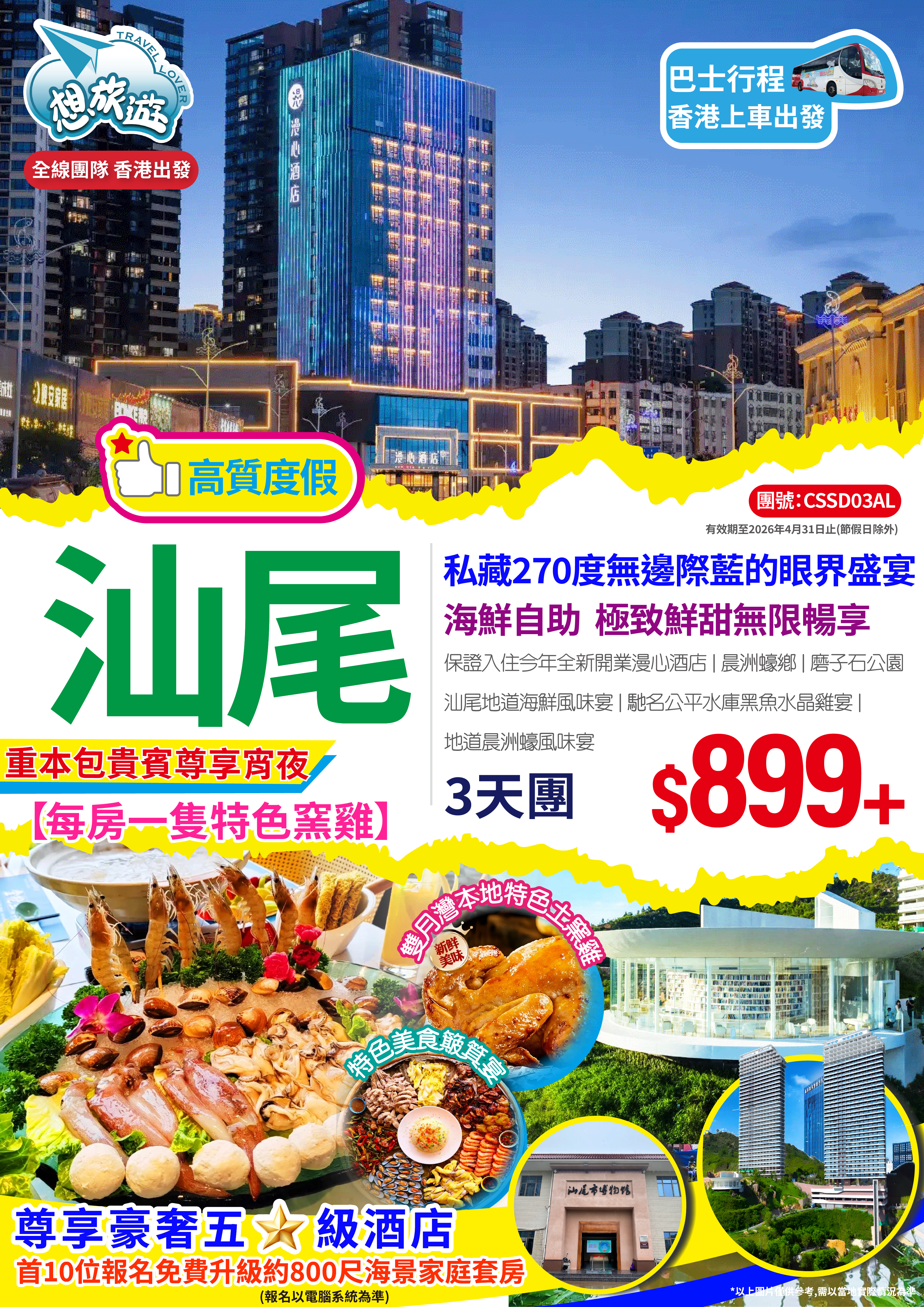 2025年全新開業漫心酒店+五星標準【雙月灣泰麗雲頂度假酒店】嘆【酒店海鮮自助晚餐】【汕尾地道海鮮風味宴】【地道晨洲蠔風味宴】【特色美食簸箕宴】3天團
