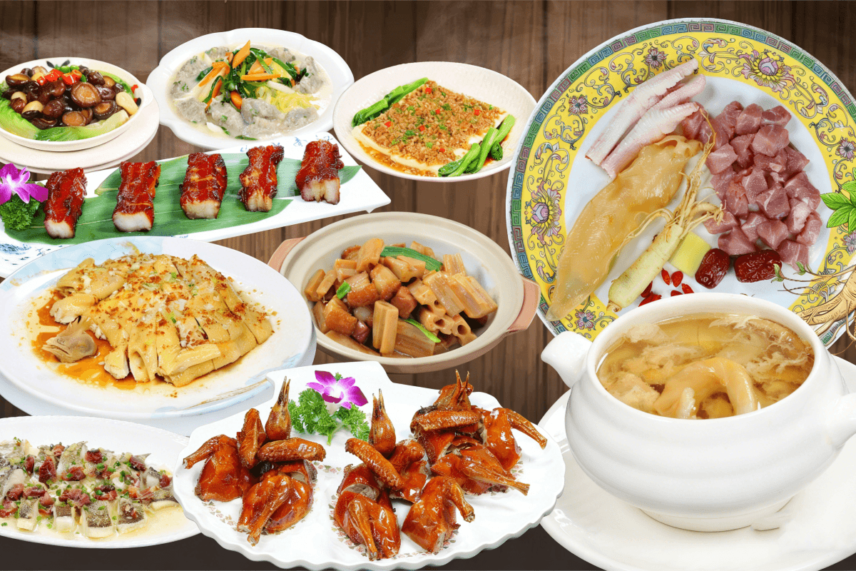 - 品嚐【金瓜翠玉藏八珍(位上)+鮑汁燴海參宴】【長白山人參燉花膠雞(位上)+生炸石岐乳鴿(每人半隻)】